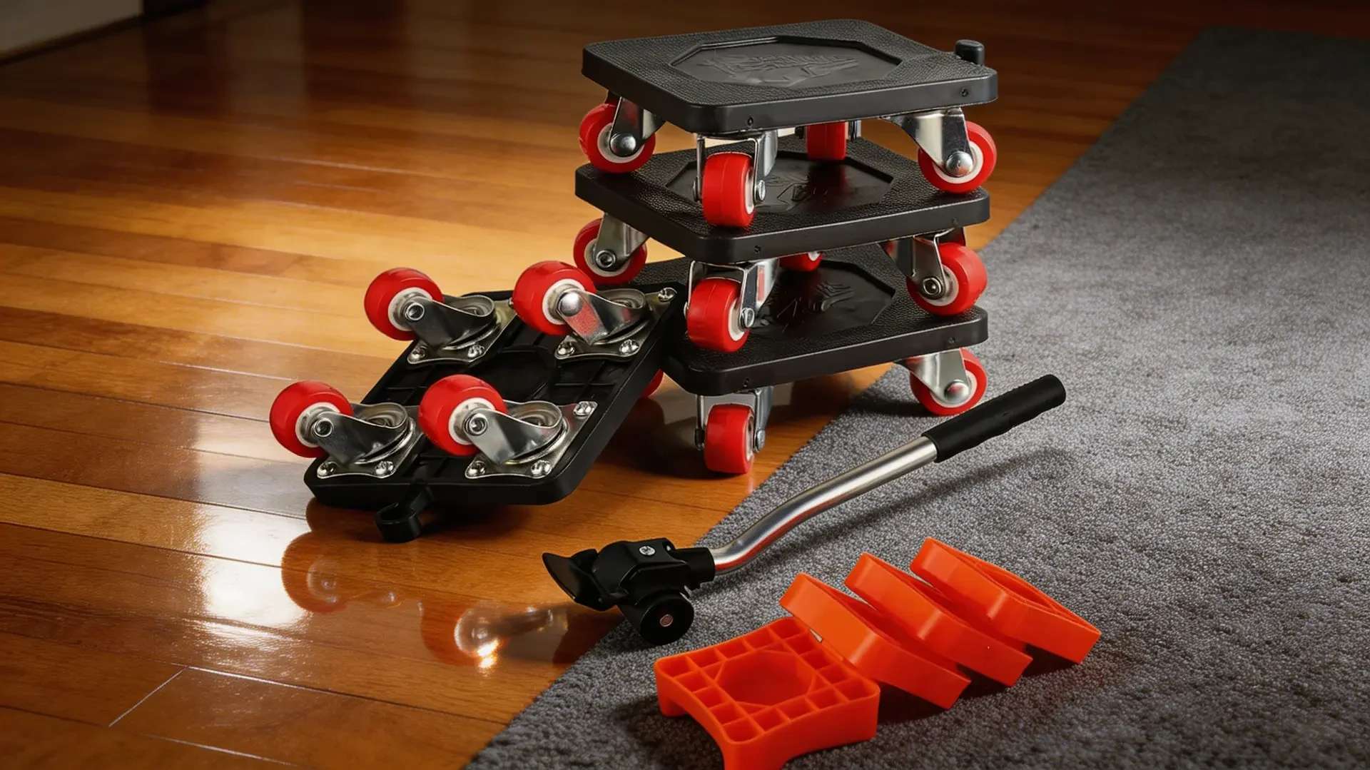 DollyKit changes the game. It features a "Max-Lift" extended pry bar that gives you 30% more leverage, so you lift with ease. Once elevated, the dollies utilize a Secure-Turn Geometry with 4-sided steel containment lips—meaning your furniture sits securely in a "cradle" and won't slip off mid-move.